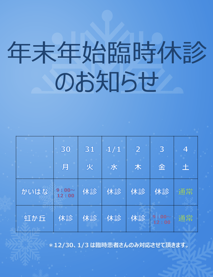 年末年始臨時休診のお知らせ